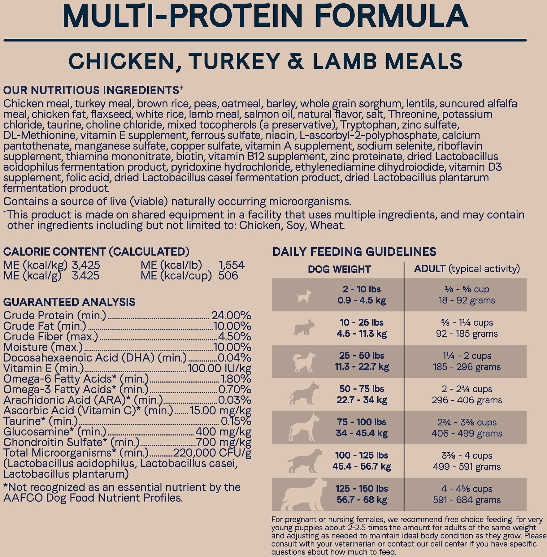 Up to 10 cash back Formulated specifically for all life stages your dog will enjoy premium ingredients rich in essential amino acids omega 3 and 6 fatty acids and optimum protein. Complete and balanced nutrition for healthy dogs. Optimum protein from chicken turkey lamb.